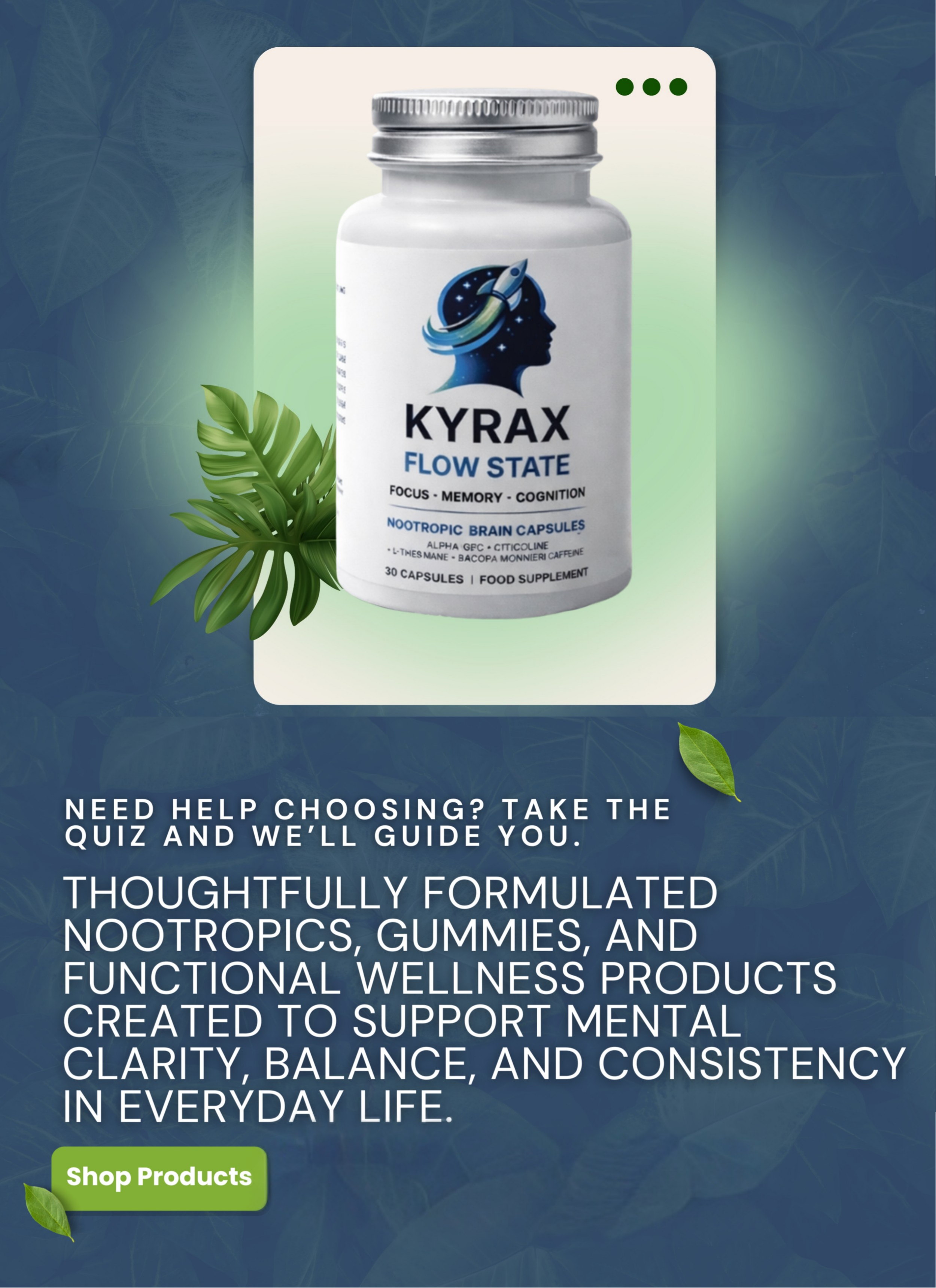 Built to assist overall brain performance, Flow State supports processing speed, concentration, and mental efficiency during demanding moments.